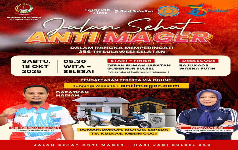 Ikuti Jalan Sehat Anti Mager 356 Tahun Sulsel! Hadiah Rumah, Umroh hingga Sepeda Motor Menanti Admin 17 Oct 2025 9 Selengkapnya...